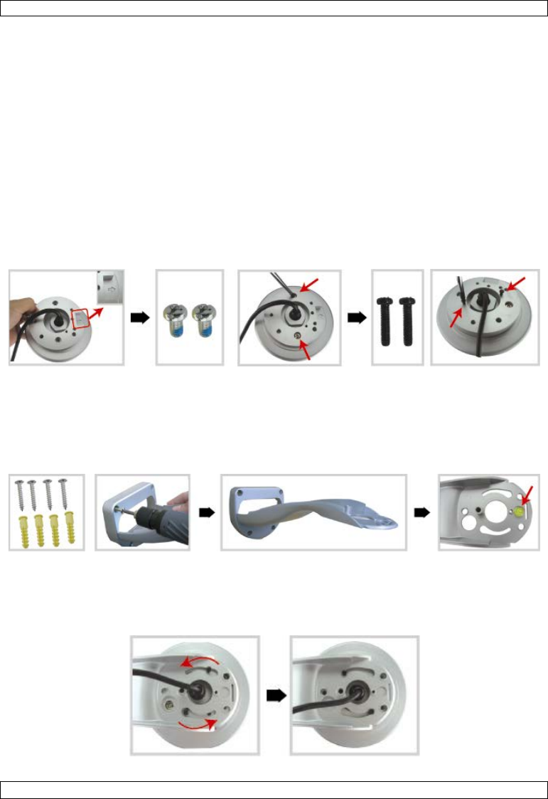• Fije la cámara al soporte con los dos tornillos de la base y gire el soporte exactamente como se