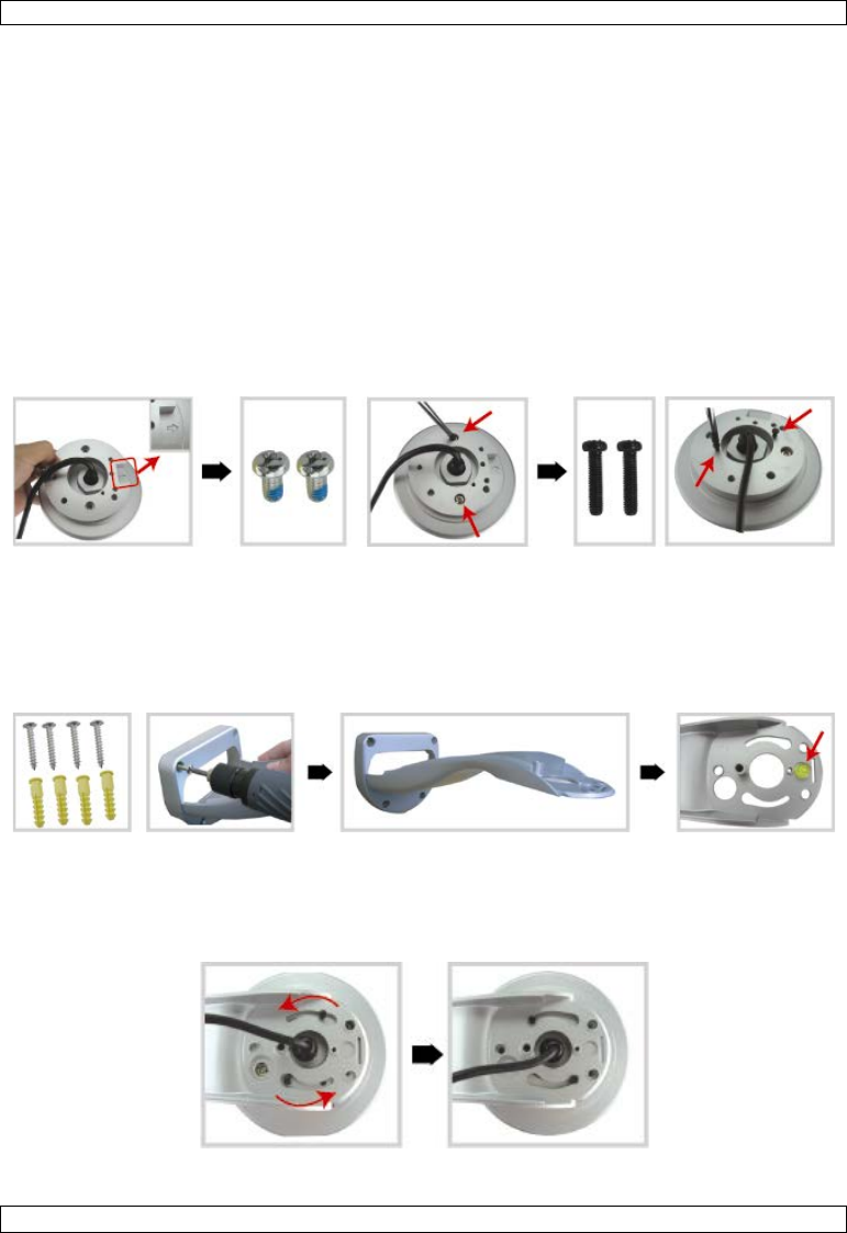 • Attach the camera to the bracket with the two mounting base screws going through, and rotate the