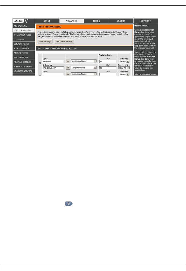 El ejemplo siguiente visualiza la pantalla de un enrutador D-Link: seleccione « Advanced » y luego