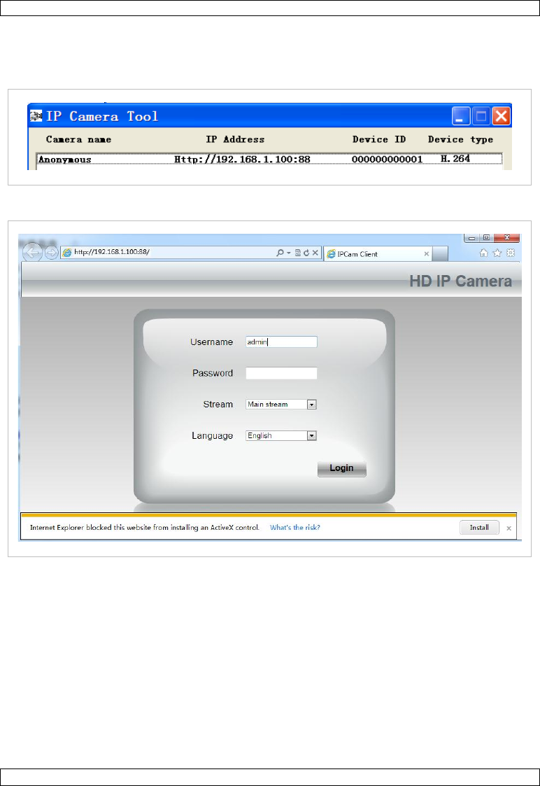 3. Klicken Sie zwei Mal auf die gelistete Kamera. Der Browser öffnet die Login-Seite der Kamera. Laden