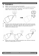 CAMTVI1 6. Slightly loosen the screw on top of the camera, adjust the sun shield and tighten the screw. 6. Connection 1. 2. Connect the power terminal of the camera to a 12 VDC regulated power supply. Connect the video output of the camera to the video input of your DVR using a 75 Ω coaxial cable. Remarks: Only use a regulated 12 VDC power adapter. Using any other type will damage this camera. Protect the connectors against moisture by applying some insulating tape over the connectors. 7.