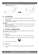 CAMTVI1 5. Installation 1. 2. Slightly loosen the hex screw on the bracket. Choose your mounting spot. Take the base as a template and drill the necessary mounting holes. If necessary, drill a hole for routing the cables. Insert a nylon plug in each hole. 3. Pass the camera cable through the base and fix the bracket using the included screws. If applicable, pass the cable through the routing hole. Slightly loosen the hex screw, adjust the camera lens and aim it toward the surveillance area. 4. 5.