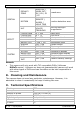 CAMTVI1 9. Spécifications Techniques indice IP élément d'enregistrement nombre de pixels Résolution processeur de signal numérique éclairage min. LEDs IR filtre IR max. portée IR max. rapport S/B objectif angle d'objectif horizontal vertical diagonal BLC AGC balance des blancs sortie vidéo audio alimentation consommation de courant température de service dimensions poids IP66 capteur d'images CMOS de 1/2.7" 1930 (H) x 1088 (V) 1080P Techpoint chip 0.1 lux / F1.8 12 oui 15 m > 48 dB (AGC éteint) f3.