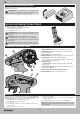 EN INSTALL THE VEHICLE BATTERY Power 1. 2. 3. 4. Power on the transmitter. Remove the four body clips from the body. Lift the body from the chassis. Place the battery in the battery tray. The battery tray length may be adjusted to fit the battery as described in the previous section. 5. Secure the battery to the tray with the hook and loop strap. 6. Connect the battery to the ESC. 7. Re-install the body and four body clips to the chassis.