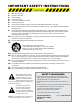 IMPORTANT SAFETY INSTRUCTIONS CAUTION 1. 2. 3. 4. 5. 6. 7. 8. Read these instructions. Keep these instructions. Heed all warnings. Follow all instructions. Do not use this apparatus near water. Clean only with dry cloth. Do not block any ventilation openings. Install in accordance with the manufacturer’s instructions. Do not install near any heat sources such as radiators, heat registers, stoves, or other apparatus (including amplifiers) that produce heat. 9.