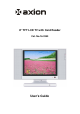 N. Specifications Display Specs: Resolution Viewing Angle Contrast Ratio 640 x 480 Hor: 60° deg., Vert: Top 50° deg. 300:1 (Max) Bottom 60° deg. Brightness Backlight Life Color System Screen type Screen size Remote Control Antenna Channels 300 Cd/㎡ (Max) 10,000 Hrs (Min) NTSC LCD 8 inches Infrared rays Ext antenna VHF Low : 2 ~ 6 VHF High : 7~13 UHF : 14 ~ 69 CATV : 1 ~ 125 2 Watts Audio output DC 12 V, 2.