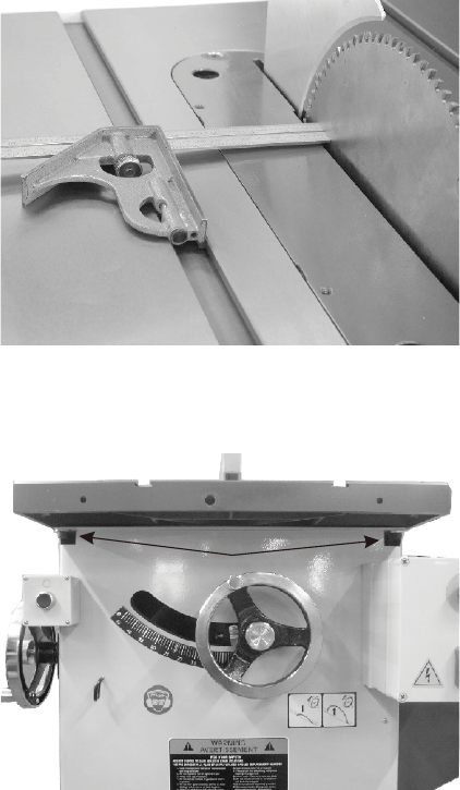 Blade alignment with the table is adjusted at the