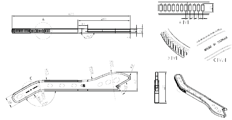 400mm long, 80mm to 100mm wide and 15mm to 20mm deep. Push blocks should