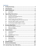 Contents 1 Safety Summary .......................................................... 1 2 Introduction ................................................................ 5 3 Quick Reference .......................................................... 6 4 5 6 7 3.1 3.2 Front Panel ......................................................................................... 6 Rear Panel .......................................................................................... 7 4.1 4.2 4.3 4.4 4.5 4.6 4.7 4.