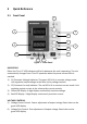 3 Quick Reference 3.1 Front Panel 5 3 1 6 7 4 8 2 9 10 11 12 Figure 1 - Front Panel INDICATORS Either the CV or CC LED indicators will be lit whenever the unit is operating. The unit automatically changes from CV to CC operation when the preset current limit is reached. 1) CV (Constant Voltage) Indicator. The green LED is lit in constant voltage mode. Unit regulates output voltage at the value set by voltage controls. 2) CC (Constant Current) Indicator.