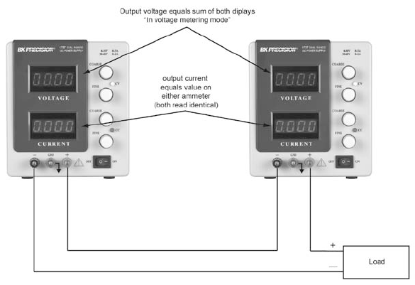 Two power supplies may be connected in series to provide a variable 0-60 volt