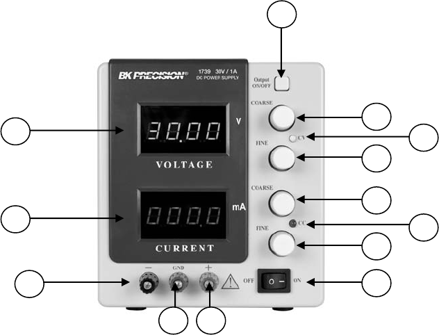 5) Voltage Coarse Control. Coarse adjustment of output voltage. Read value on the