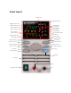 Panel layout Setup indicator Voltage display indicator Voltage or preset current, voltage or resistance value Step B + memory B Step A + memory A Step C + memory C Step D + memory D CC mode indicator Recall indicator CV mode indicator Short indicator CR mode indicator 30A mode selector indicator Shift indicator Current or power value Power display indicator Input off indicator Current display indicator Memory save (shift) Recall (shift) Left arrow + memory A Right arrow + memory B Function setup (s