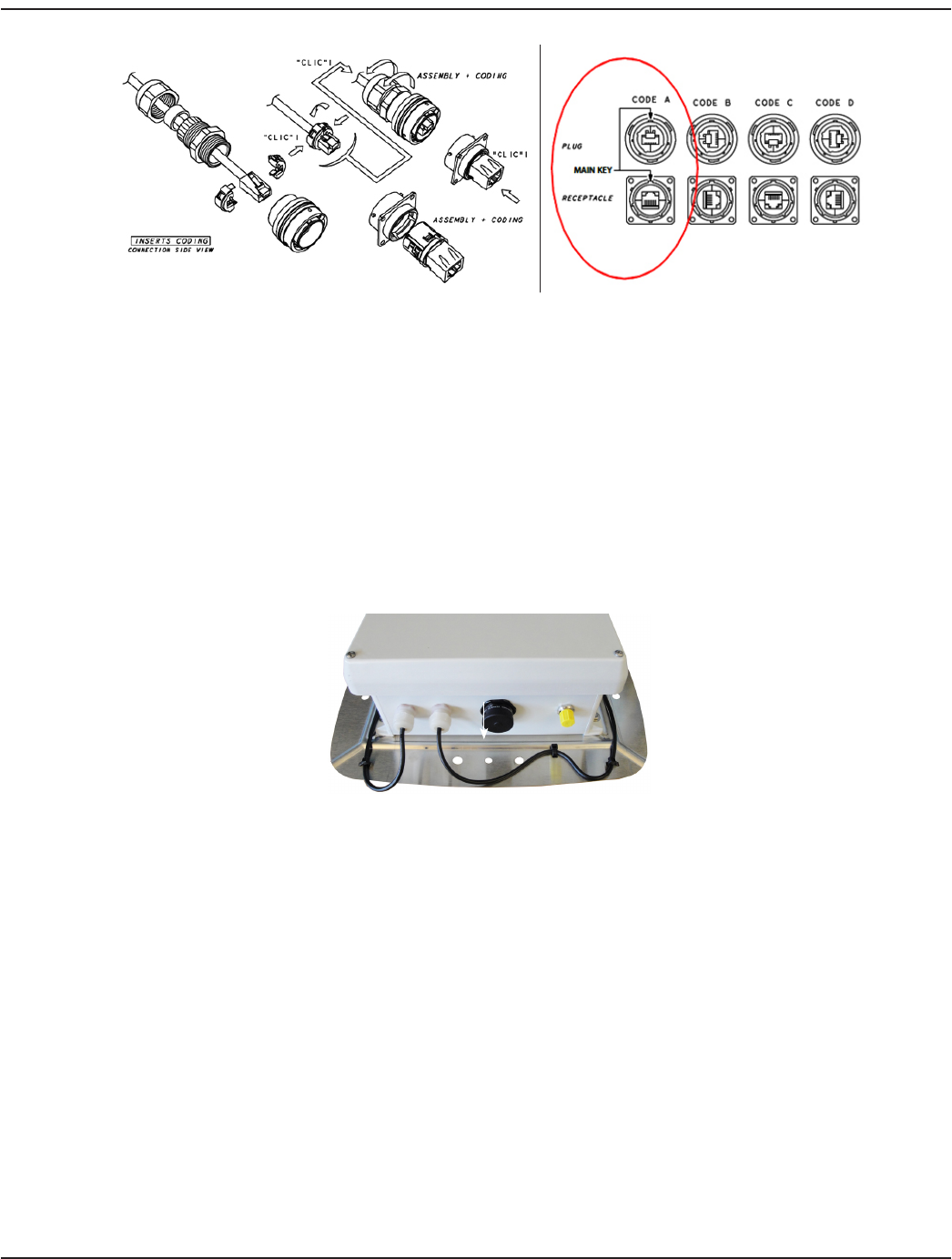 NOT:N Code A orientation must be used or the plug will not fit into the receptacle. Assembled RJ45 plugs cannot be