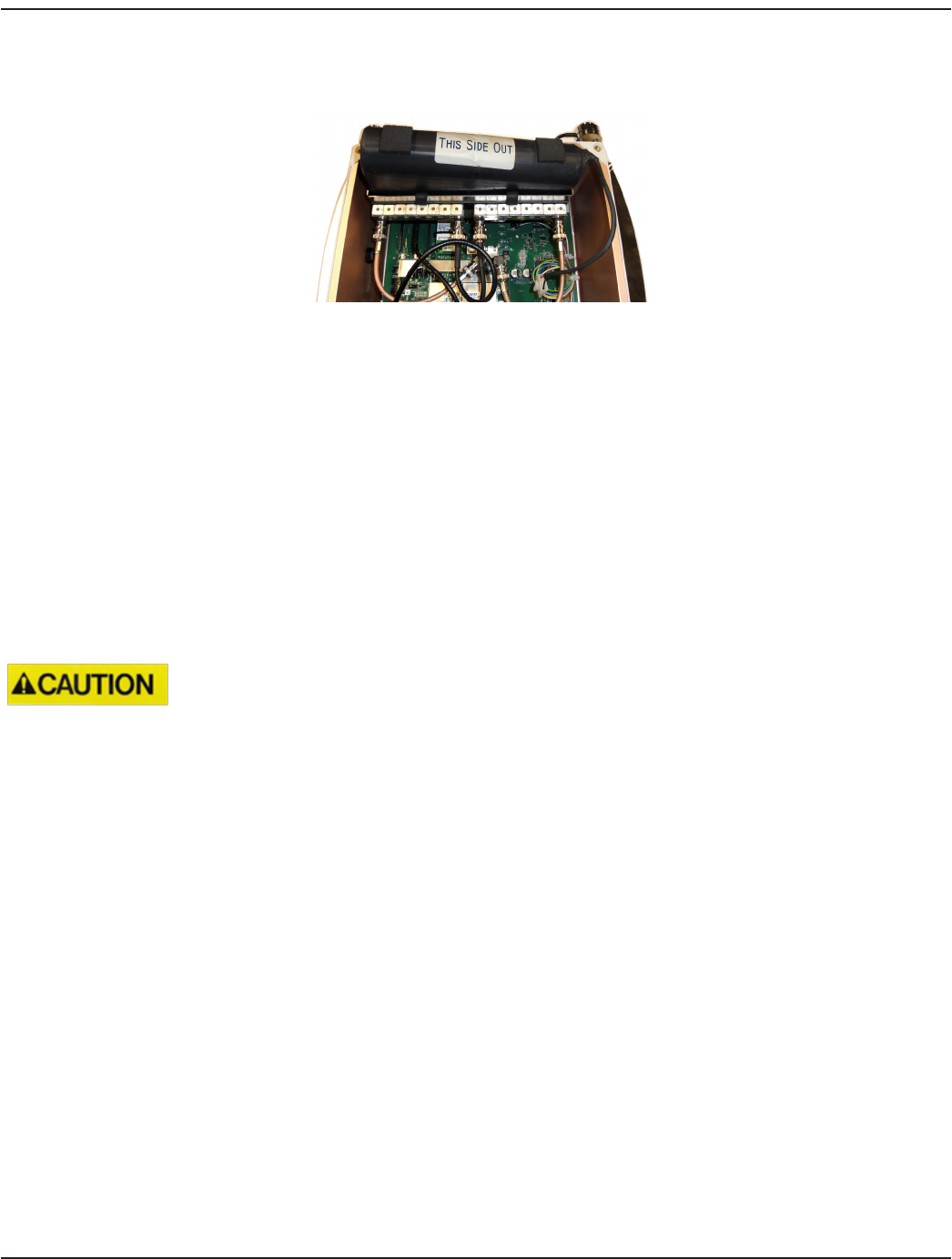 4. Place the new battery into the enclosure with the battery label “This Side Out” visible and upright, as shown above.