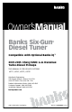 Dear Customer, If you have any questions concerning the installation of your Banks Six-Gun Diesel Tuner, please call our Technical Service Hotline at (888) 8392700 between 7:00am and 5:00pm (PST). If you have any questions relating to shipping or billing, please contact our Customer Service Department at (888) 839-5600. Thank you. The Banks Six-Gun Diesel Tuner has six power levels that you can adjust with either the Six-Gun switch (supplied) or the optional Banks iQ (sold separately).