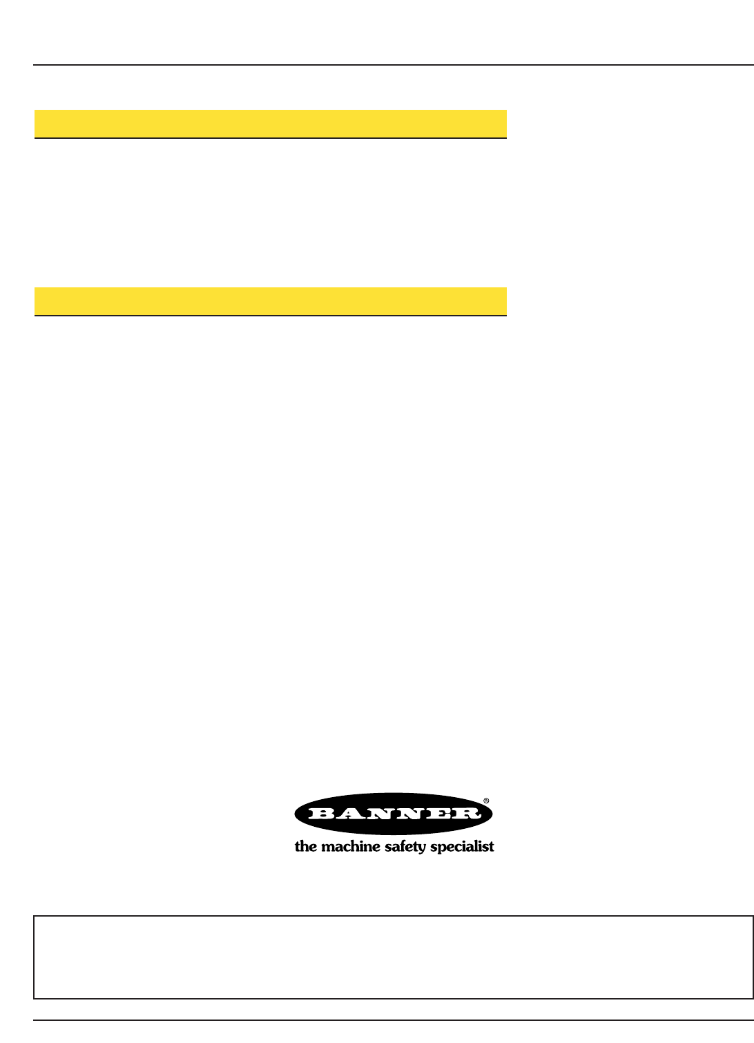 WARRANTY: Banner Engineering Corporation warrants its products to be free from defects for one year. Banner Engineering Corporation