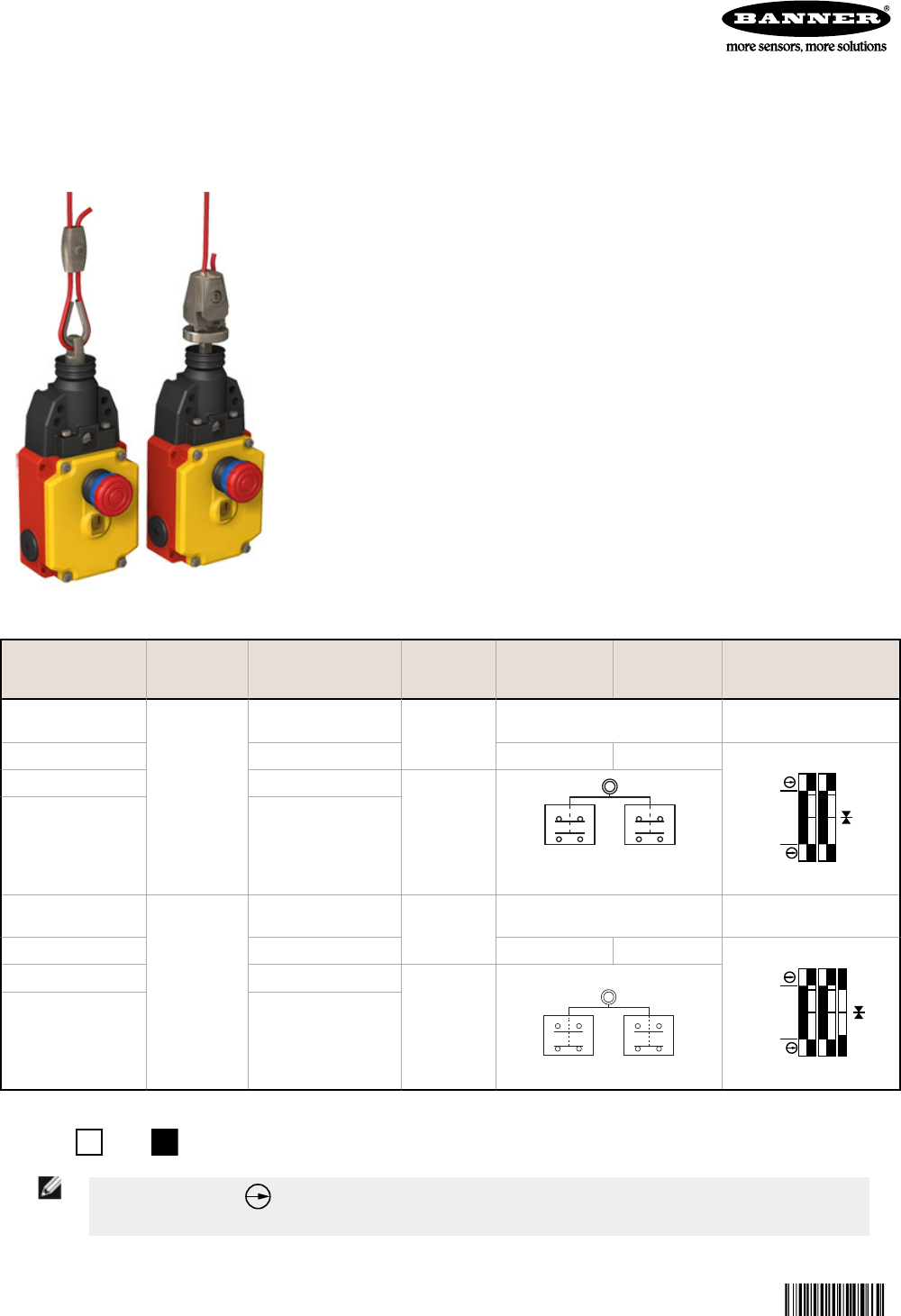 • Both safety contacts latch open when rope is pulled, broken, or if