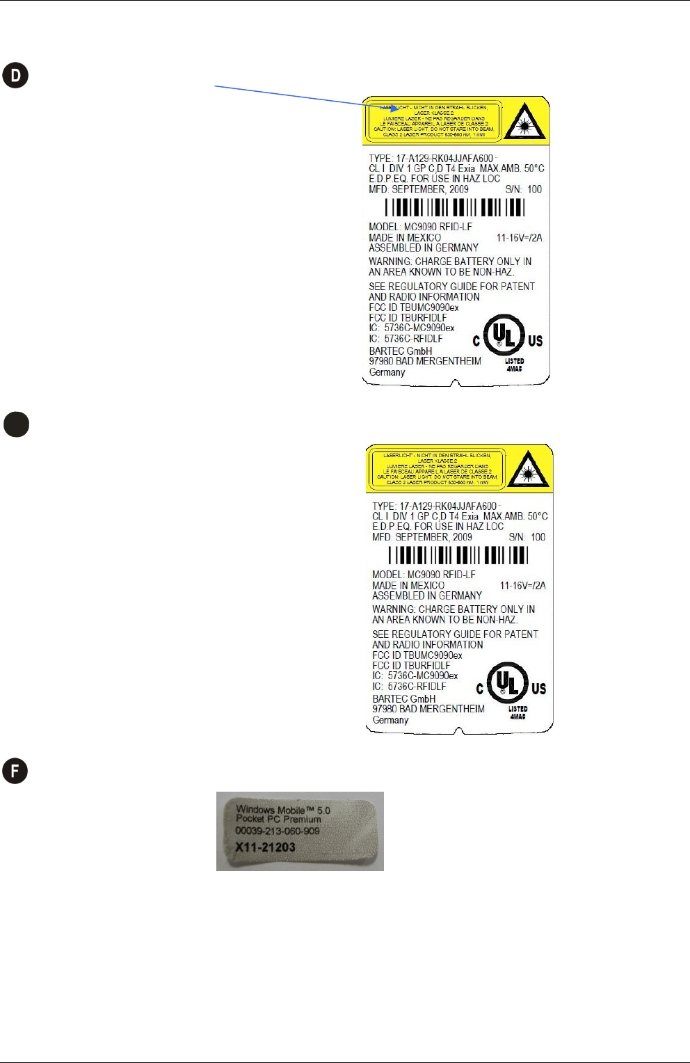 Label contains details on the Motorola device before it was modified by BARTEC GmbH.