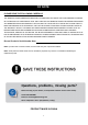 IMPORTANT SAFETY INFORMATION Read all these instructions for use carefully. Familiarize yourself with the appliance before connecting it to a gas cylinder. Keep these instructions for future reference. This instruction manual contains important information necessary for the proper assembly and safe use of the appliance. Follow all warnings and instruction when using the appliance. If you have questions about assembly, operation, servicing or repair of this product, please call Customer Service at 909.628.