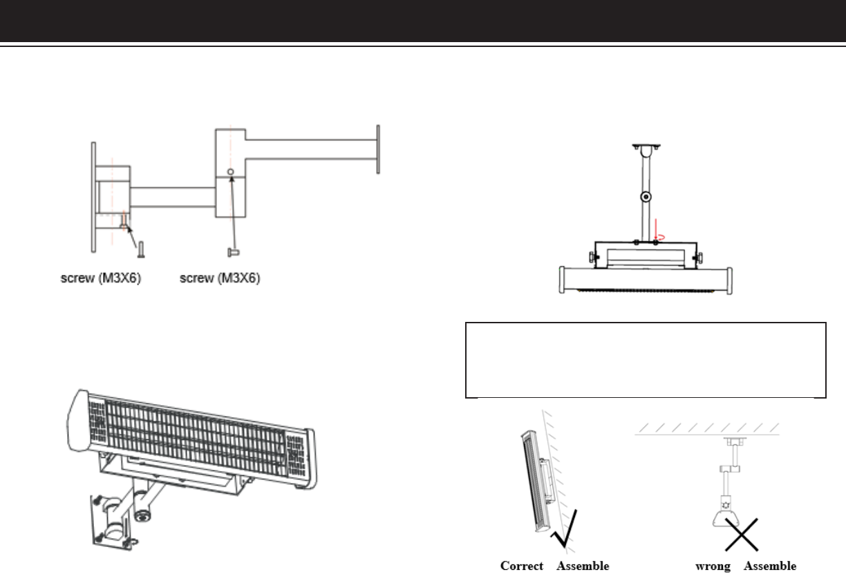 Only use the halogen heater on a rm solid vercal wall where the Mounng Bar is in contact with