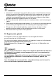 1. Algemeen 1.1 Informatie over de gebruiksaanwijzing Deze gebruiksaanwijzing bevat de beschrijving van de installatie, de bediening en het onderhoud van het toestel en dient als belangrijke informatiebron en naslagwerk. De kennis en het in acht nemen van alle hier beschreven veiligheidsvoorschriften en instructies is een voorwaarde voor veilig en juist gebruik van het toestel.