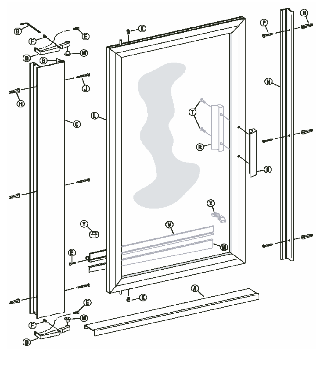 C. 1 Pivot Jamb L. 1 Glazed Door Panel W. 1 Tapered Drip Vinyl
