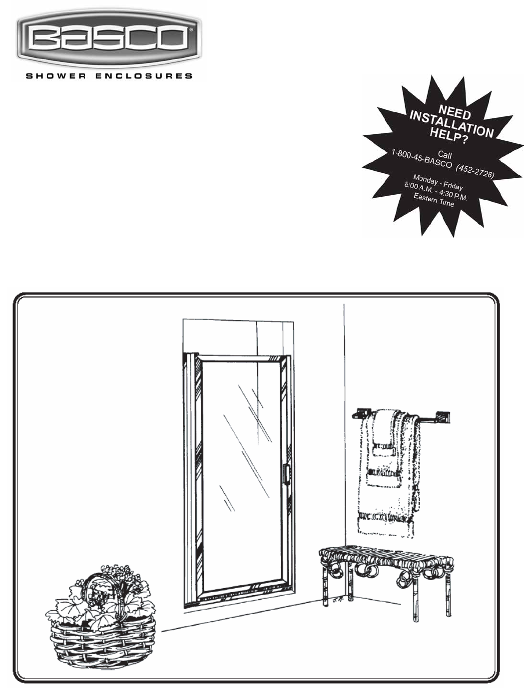 The Basco 100/200 Pivot Shower Door is completely reversible and may be installed pivot-right or pivot-left. Using the diagram, determine the correct position for your installation. For maximum waterproofing, the pivot jamb should always be opposite the shower head. These instructions depict a pivot left installation. CAUTION: For safety, the door must always open outward. 2 Note: The 100/200 unit may be installed without using the sloped curb [A] provided.