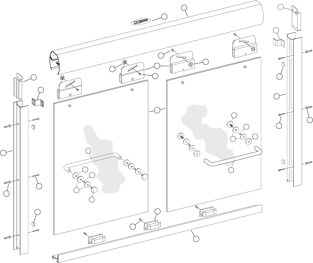 J. Glass Door Panel (2) X. Nylon Jamb Cover (2)