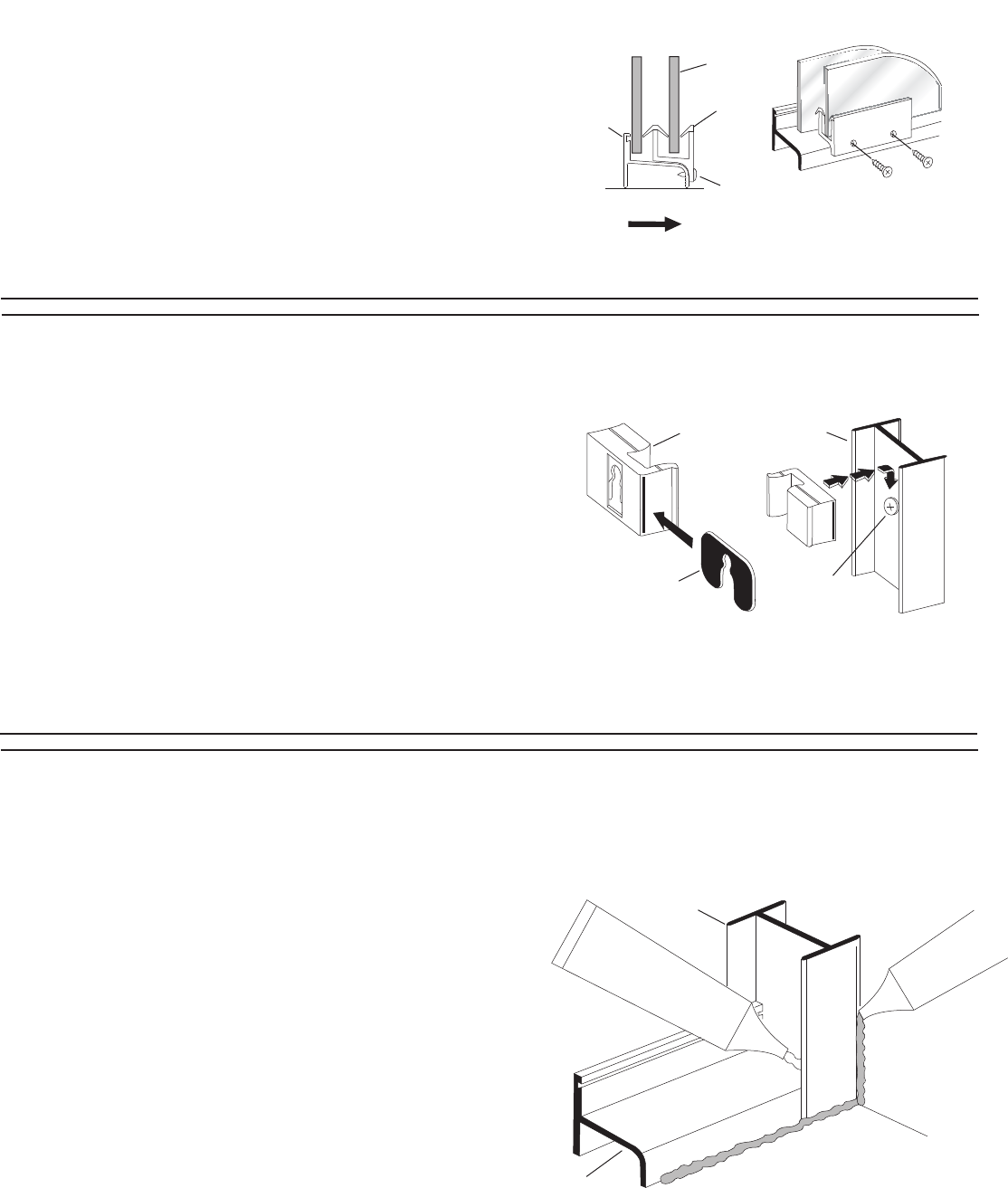 the four soft vinyl jamb bumpers [V]. Align the slots in
