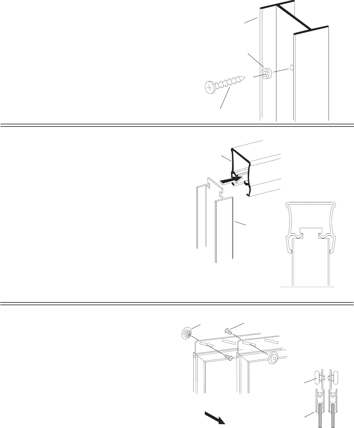Slip a nylon spacer [E] over a #8 x 1 1/2” truss head screw