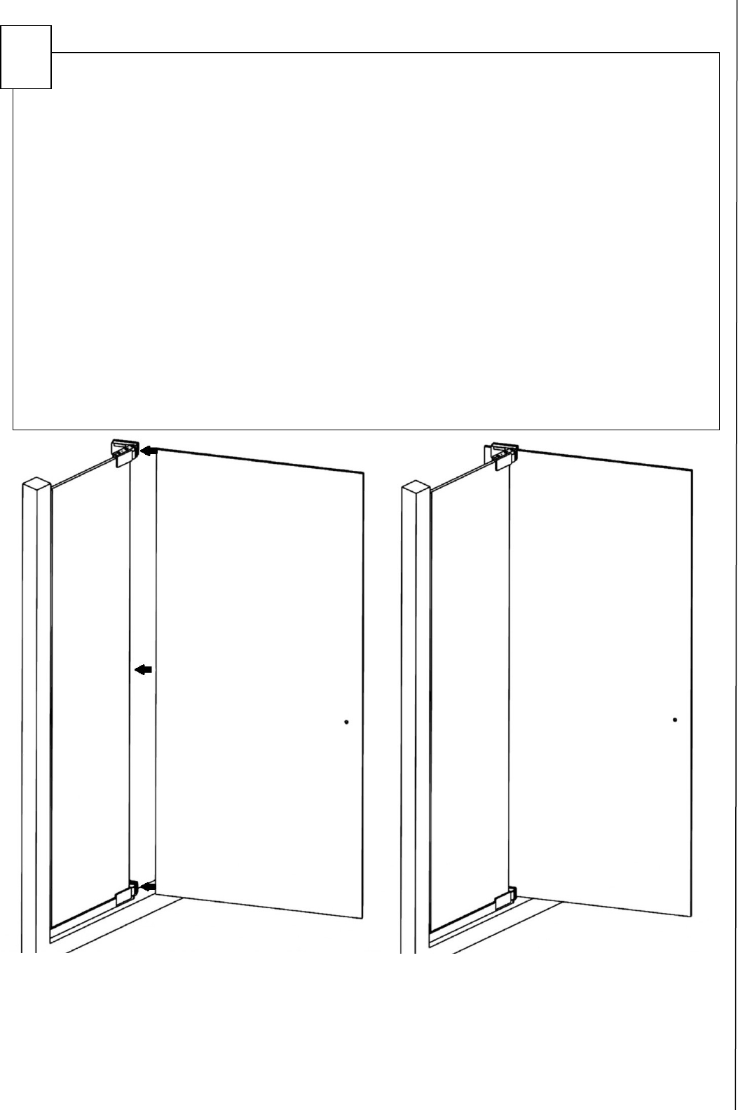 Carefully slide the Door Glass (F) into the open hinge slots and ghten the Door