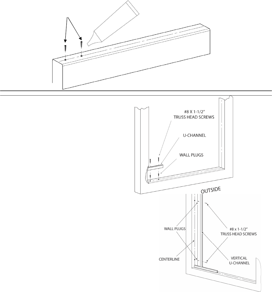 (Note: Drill hole, then insert a wall anchor.) This must be done just before u-channel installation.