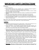IMPORTANT SAFETY INSTRUCTIONS When using your garage equipment, basic safety precautions should always be followed, including the following: 1. Read all instructions 2. Do not operate equipment with a damaged cord or if equipment has been dropped or damaged – until it has been examined by a qualified service person 3. Do not let a cord hang over the edge of the table, bench, or counter or come in contact with hot manifolds or moving fan blades 4.