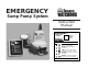 EMERGENCY Sump Pump System Instruction Manual EMERGENCY SUMP PUMP SYSTEM Push to test or reset WARNING/What to do POWER Check circuit breaker & plugs or replace charger. WATER Add distilled water to the battery. PUMP The pump was activated. Check your main pump for failure. CHARGER The charger is charging the battery. BATTERY The battery is defective or discharged. Replace battery.