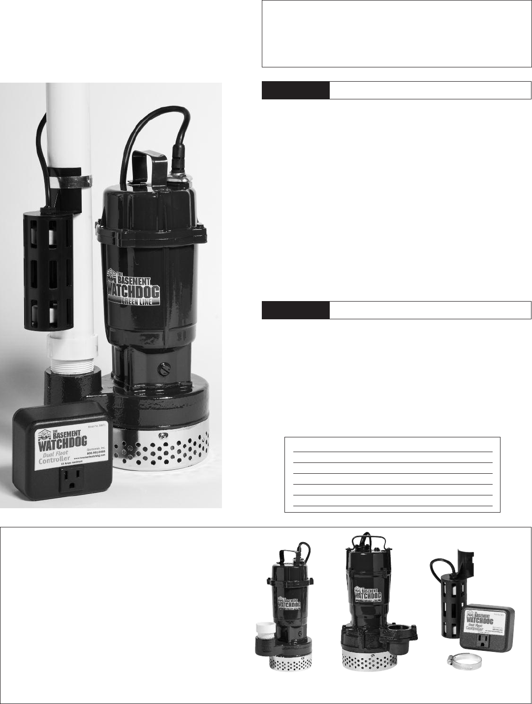 OPERATING INSTRUCTIONS for the Basement Watchdog pumps. You will need to refer to