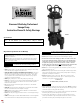 • Sewage pumps will not provide protection during a power outage. DO NOT use plumbing