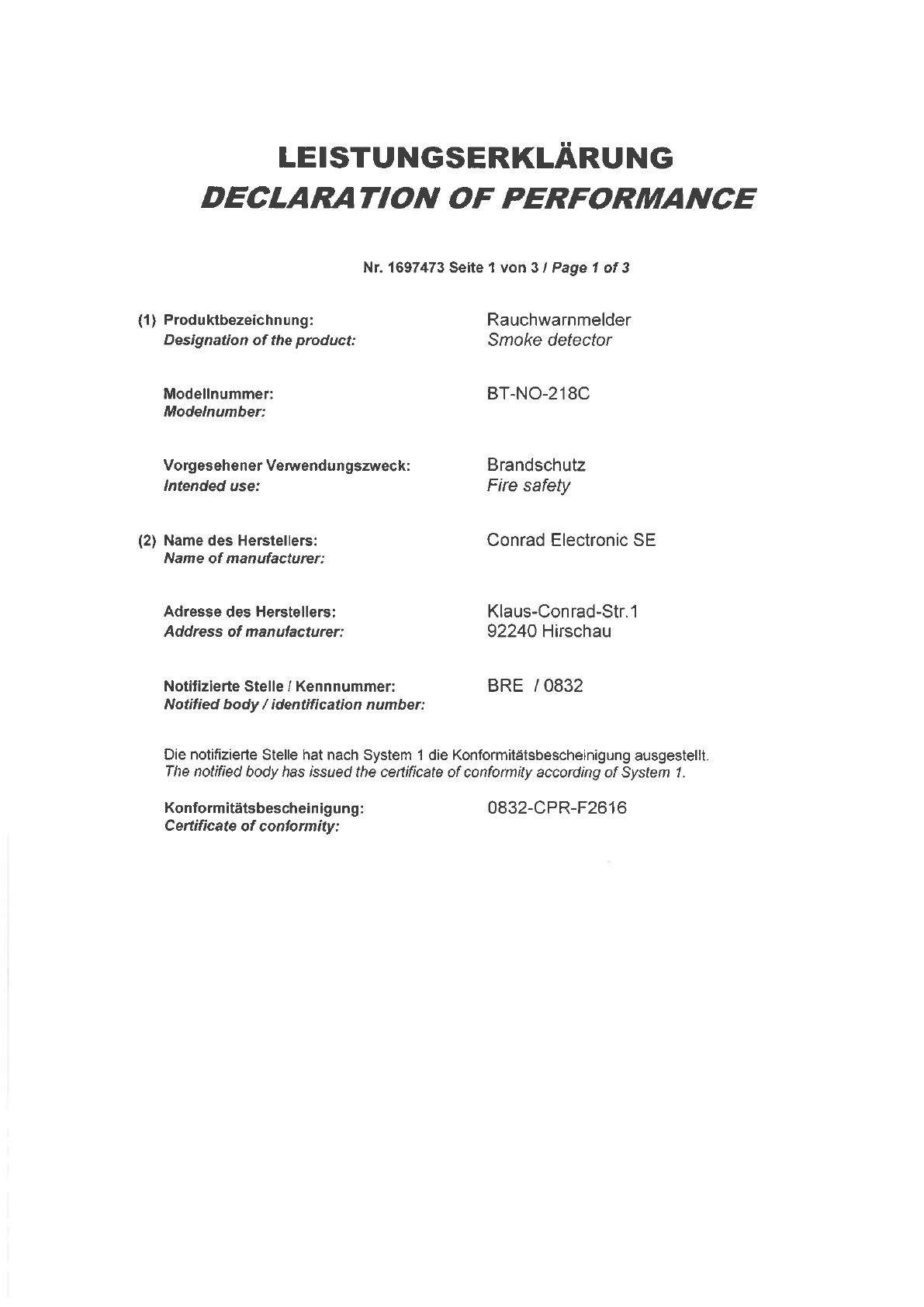Basetech BT-NO-218C BE-3394946 Smoke detector incl. 10-year battery battery-powered