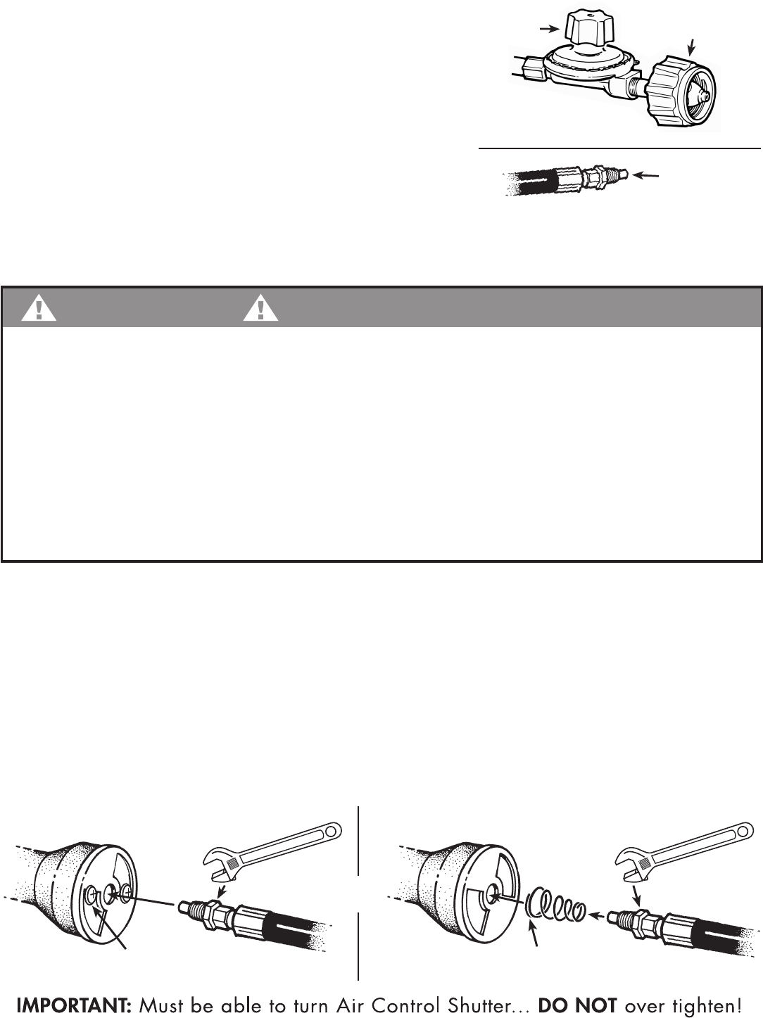 • DO NOT attempt to connect it to any other fuel supply source such as a natural gas line.