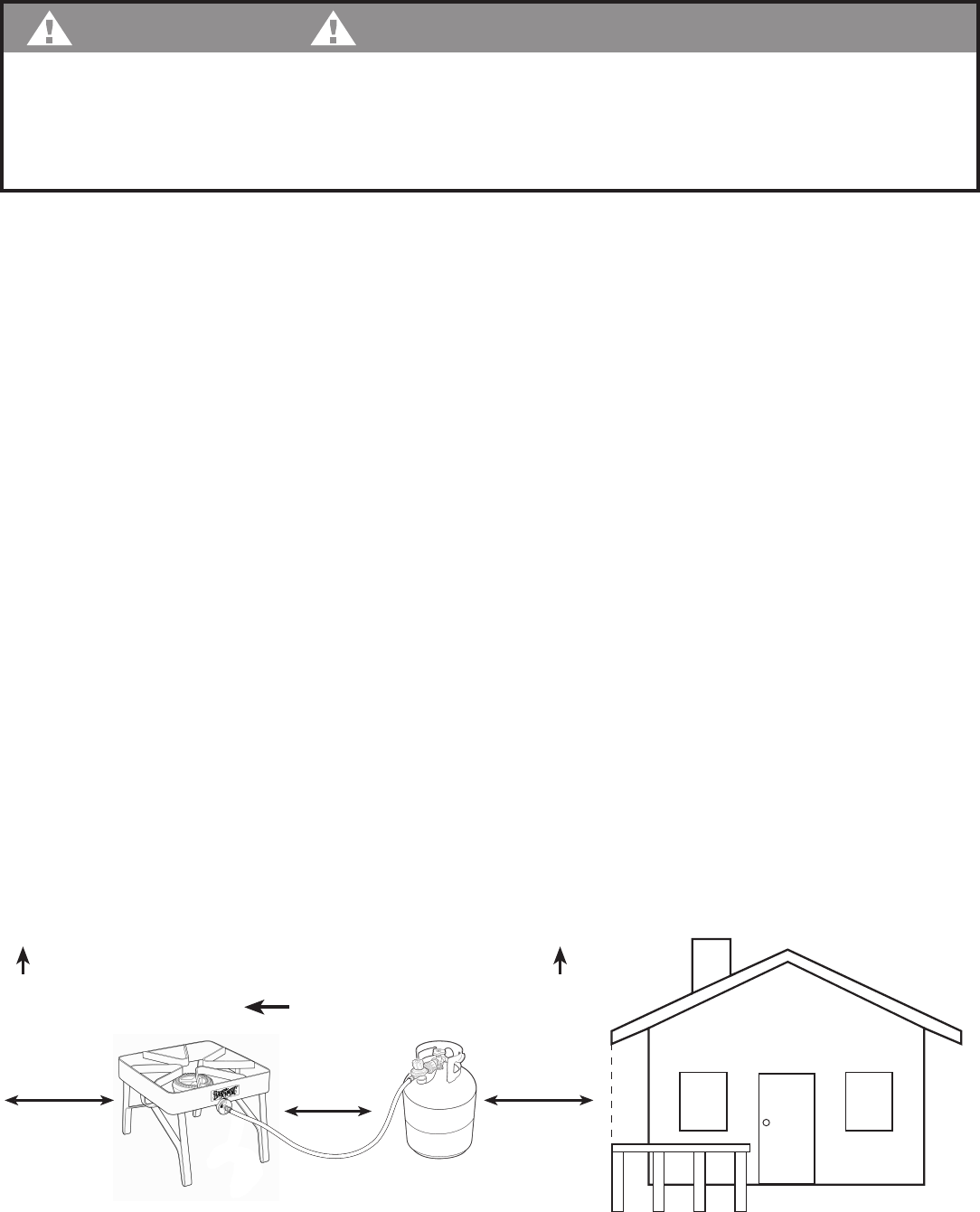 materials, buildings and overhangs. Propane cylinder should be positioned upwind from cooker so