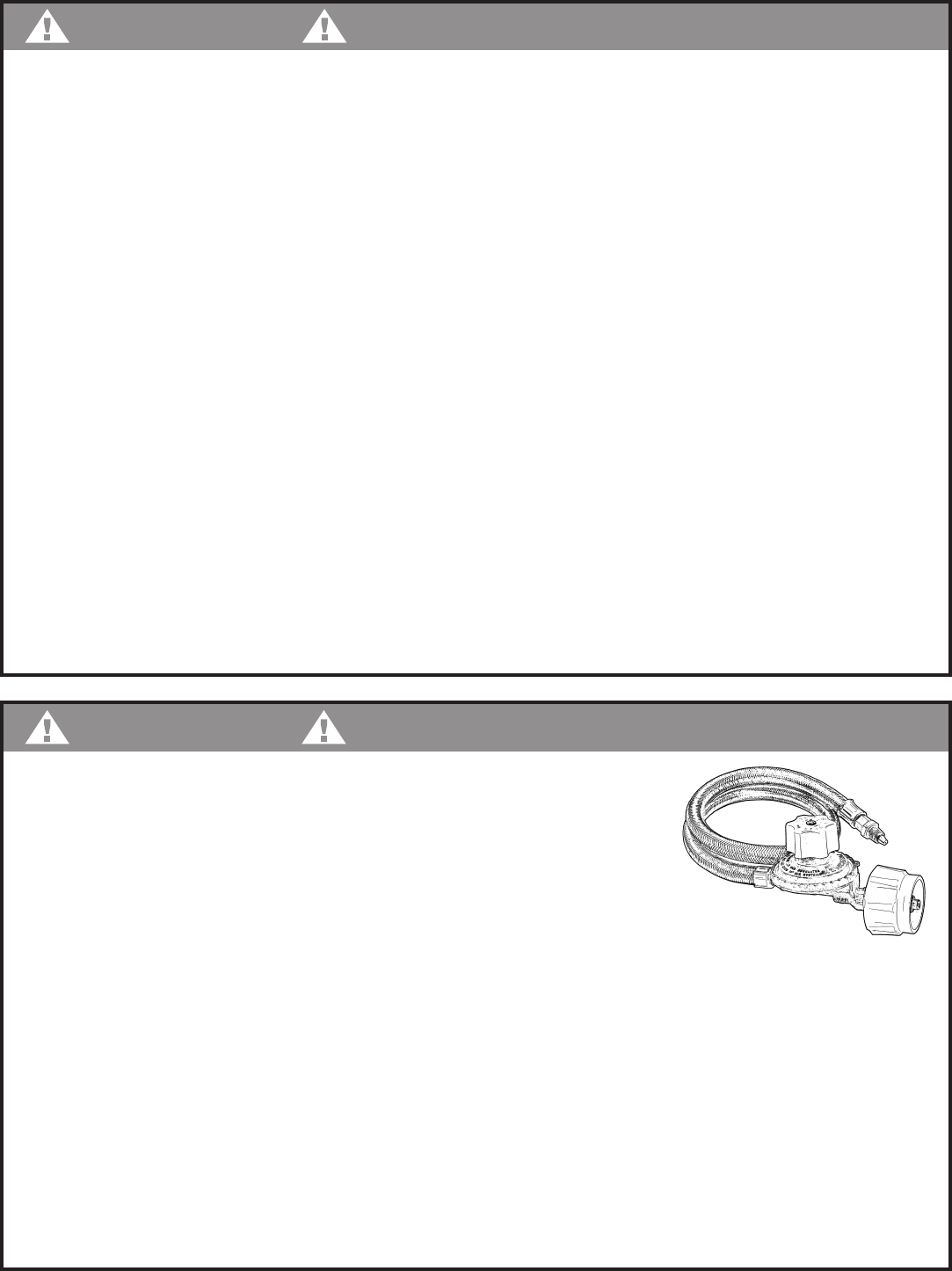• Refer to instructions for connecting regulator hose assembly to LP gas cylinder and burner in this
