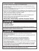 WARNING GENERAL OPERATING - CONTINUED • Use caution when walking or standing near cooker as splattered liquids may have created a slick surface. Do not walk between cooker and propane tank as this creates a trip hazard. Tripping over the hose could overturn the cooker or knock cooking vessel of hot liquid from cooker causing severe burns. • Avoid bumping of or impact with the appliance to prevent spillage or splashing of hot cooking liquid which can cause severe burns.