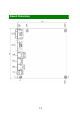 - 1x chassis intrusion switch header - 1x S/PDIF-Out header - 1x amplifier header - 1x LVDS connector - 1x 20-pin ATX power connector Environmental Slots - 1 Mini PCI-E slot - 1 32-bit/33MHz PCI slot Form Factor - Mini ITX: 170mm x 170mm Mounting Storage Environment Operation Environment - 4 mounting holes - Temperature: -20oC ~ 80oC - Humidity: 5% ~ 90% non condensing - Temperature: 0oC ~ 60oC - Humidity: 5% ~ 90% non condensing 1-2
