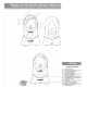 b) The centralized night light will turn on for 1 second (picture 9c) c) Push the button “ON-OFF” (picture 9d); the “Power” led and “Link” led will turn on (picture 9e) NOTE 1: the recommended batteries are 4 x AA Alkaline 2: the baby unit will only work from the batteries if the mains power is disconnected 3: Battery low: The power indicator LED on baby unit blinks and the link indicator LED on Parent Unit blinks red (picture 9f) 4: Please power off the baby unit before removing the main power or the batte