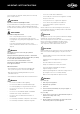 OPERATING INSTRUCTIONS Control functions Lighting instructions Before lighting the barbecue: • Do not attempt to light burners with the cooking surfaces covered • Read instructions before lighting • To light a burner, depress the knob and rotate to The starter mechanism will click and the burner will light • If burner did not light, depress knob and turn back to the ‘OFF’ position • Allow several minutes for gas to disperse then repeat lighting procedure • Once ignited, the knob can then be t