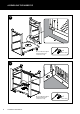 ASSEMBLING THE BARBECUE 13 First fit lower door pin into the hole on the base assembly. Then depress the upper door pin with your finger, line up with the hole above on the separator panel, and release to allow the pin into the hole. 14 Remove the grease tray, then carefully lift the barbecue onto the trolley with two people, inserting the gas connector into the hole as shown.