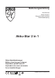 EN Akku-Star 2 in 1 Contents General notes. . . . . . . . . . . . . . . . . . . . 17 Safety instructions . . . . . . . . . . . . . . . . 19 Startup . . . . . . . . . . . . . . . . . . . . . . . . . . 22 Appliance description. . . . . . . . . . . . . . 23 Preparations. . . . . . . . . . . . . . . . . . . . . 24 Operation and use. . . . . . . . . . . . . . . . . 24 Cleaning and care. . . . . . . . . . . . . . . . . 25 Storage. .