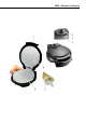 EN Eiswaffel-Express Appliance description (For illustrations, see the fold out page at the left.) 1 Handle 2 Temperature control 3 Indicator lamp (green), baking phase 4 Indicator lamp (red) heating phase 5 Forming cone for shaping waffle cones 6 Baking surfaces 7 User manual (not shown) Bio-Lon® ceramic The baking surfaces have a white ceramic non-stick coating. It is free of PTFE and PFOA and prevents the batter from sticking.