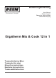 DE Gigatherm Mix & Cook 12 in 1 Konformitätserklärung Hiermit erklärt die Firma BEEM, dass sich dieses Gerät in Übereinstimmung mit den grundlegenden Anforderungen und den übrigen einschlägigen Bestimmungen der Richtlinien 2006/95/EG, 2004/108/EG und 2009/125/EG befindet.