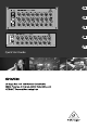 10 SD16/SD8 11 Quick Start Guide SD16/SD8 Controls (EN) Step 1: Hook-Up (ES) Paso 1: Conexión (FR) Étape 1 : Connexions (DE) Schritt 1: Verkabelung (PT) Passo 1: Conexões Keyboard BUGERA V22 XM8500 Additional SD8/16 (Optional) P16-M P16-M F1320D Active Monitors Shielded CAT5 F1320D Active Monitors B215D active loudspeakers VIEW VIEW VIEW VIEWVIEW VIEW VIEW –6 5 5 0 0 0 –10 –10 –10 520 55 5 –10 –10 20 20 30 30 30 –––10 ––0 40 50 50 50 60 60 60 ––––40 –40 0 00 X32 Digital Mixer VIEW VIEW VIEW